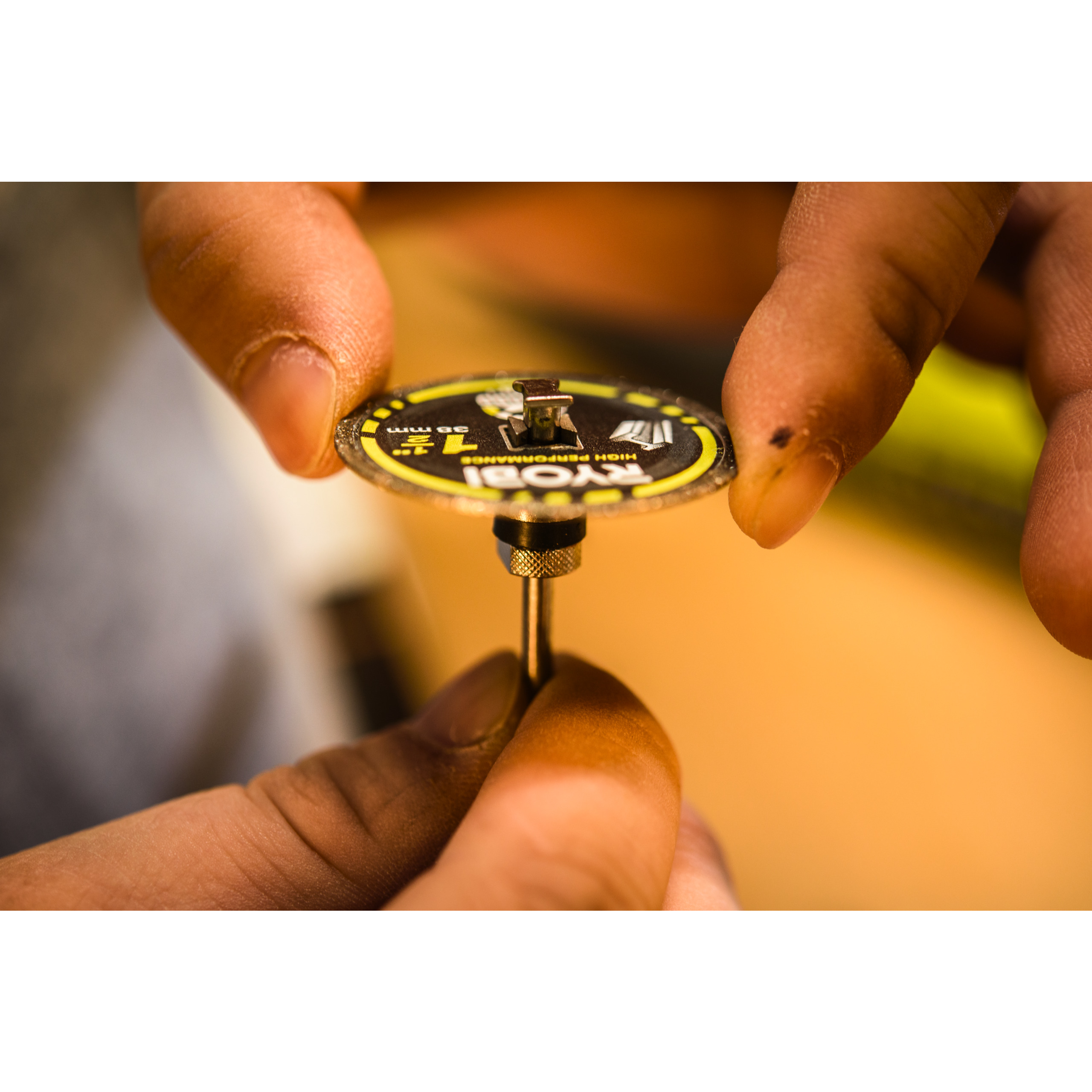 - Compatibilitate universală cu uneltele rotative RYOBI® și cu orice altă unealtă rotativă cu o capacitate de prindere de 3,2 (⅛″)
