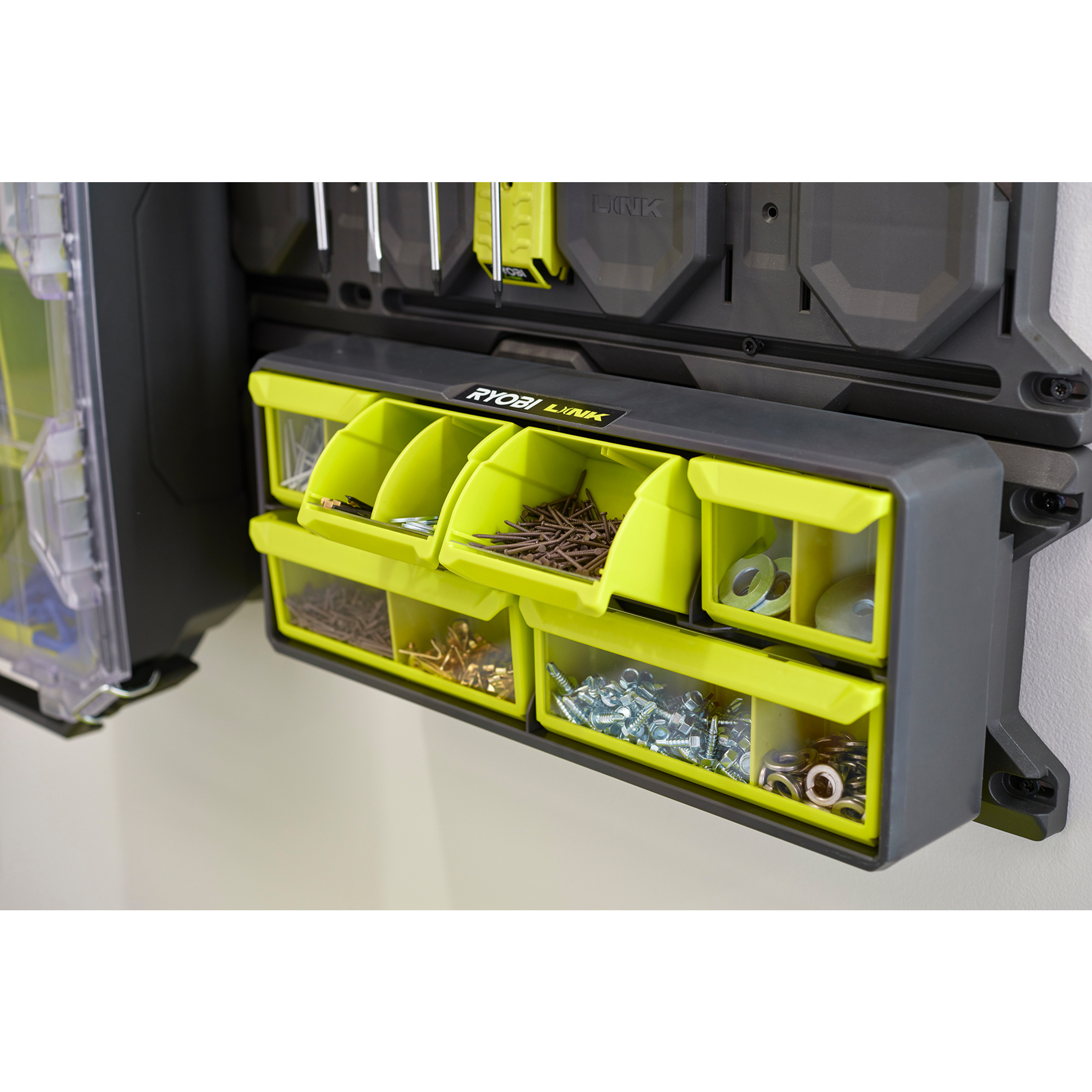 - Compatibil cu sistemul RYOBI® LINK. Organizați-vă și personalizați-vă spațiul!