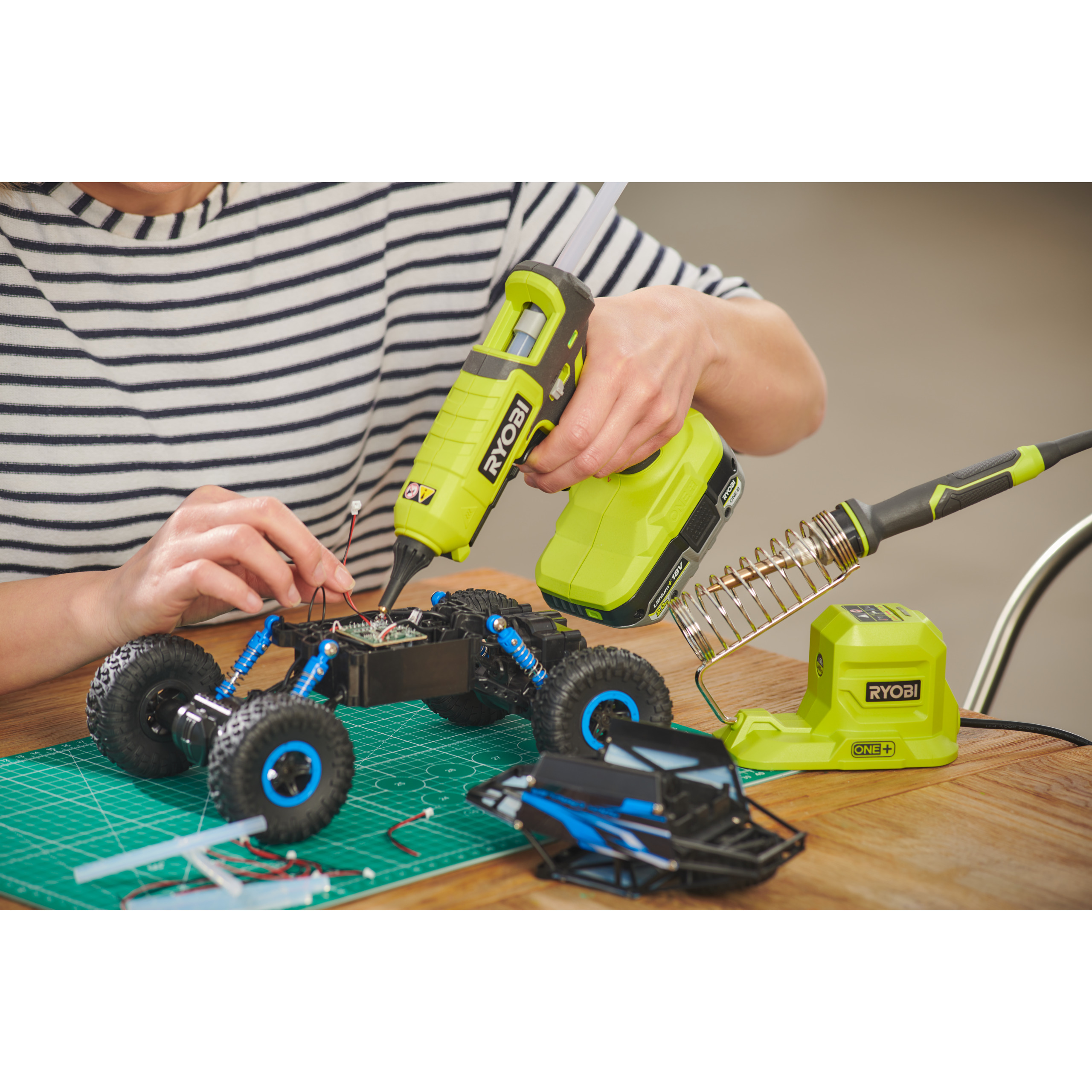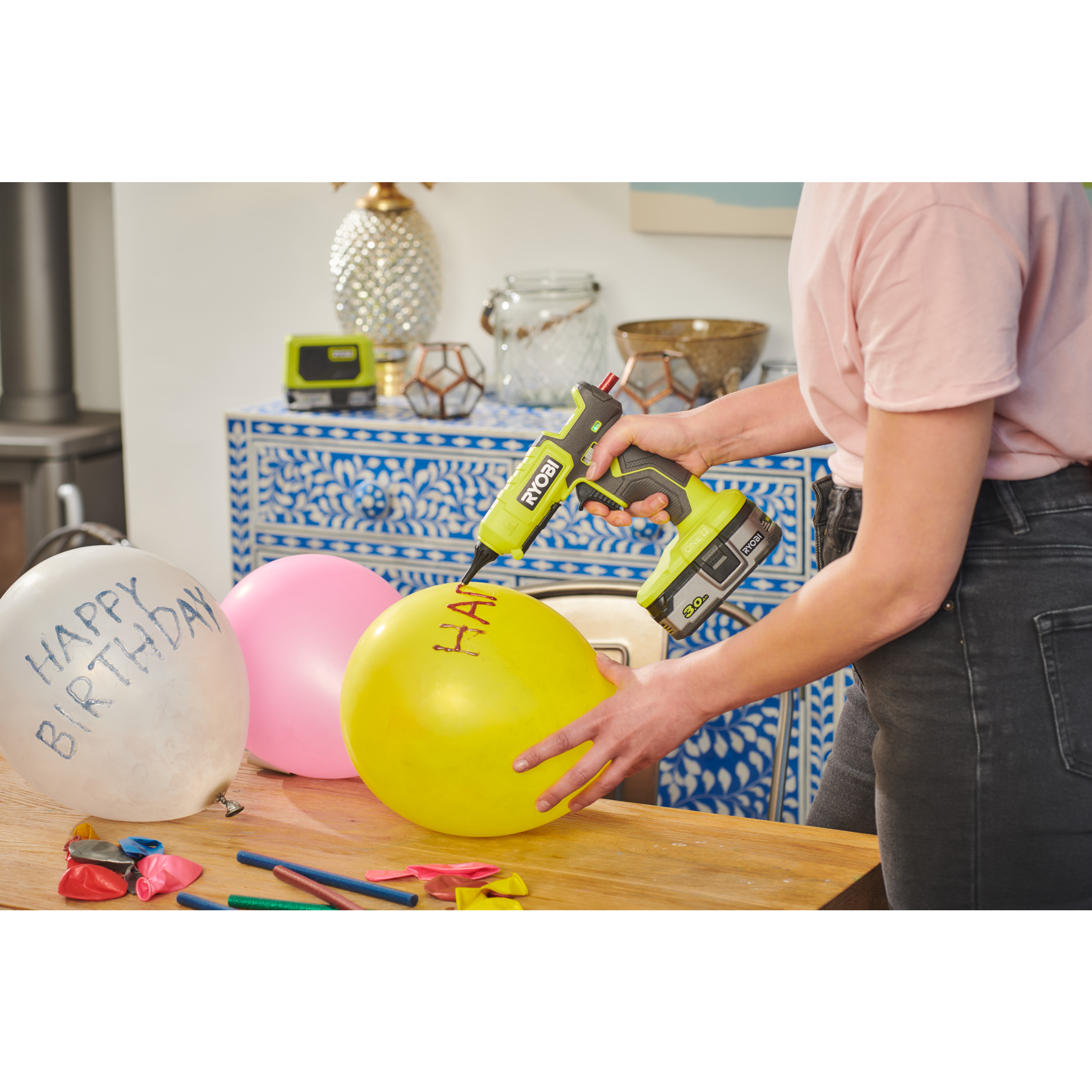 - Un LED integrat indică dacă pistolul de adeziv se încălzește (roșu) sau este gata de utilizare (verde)
