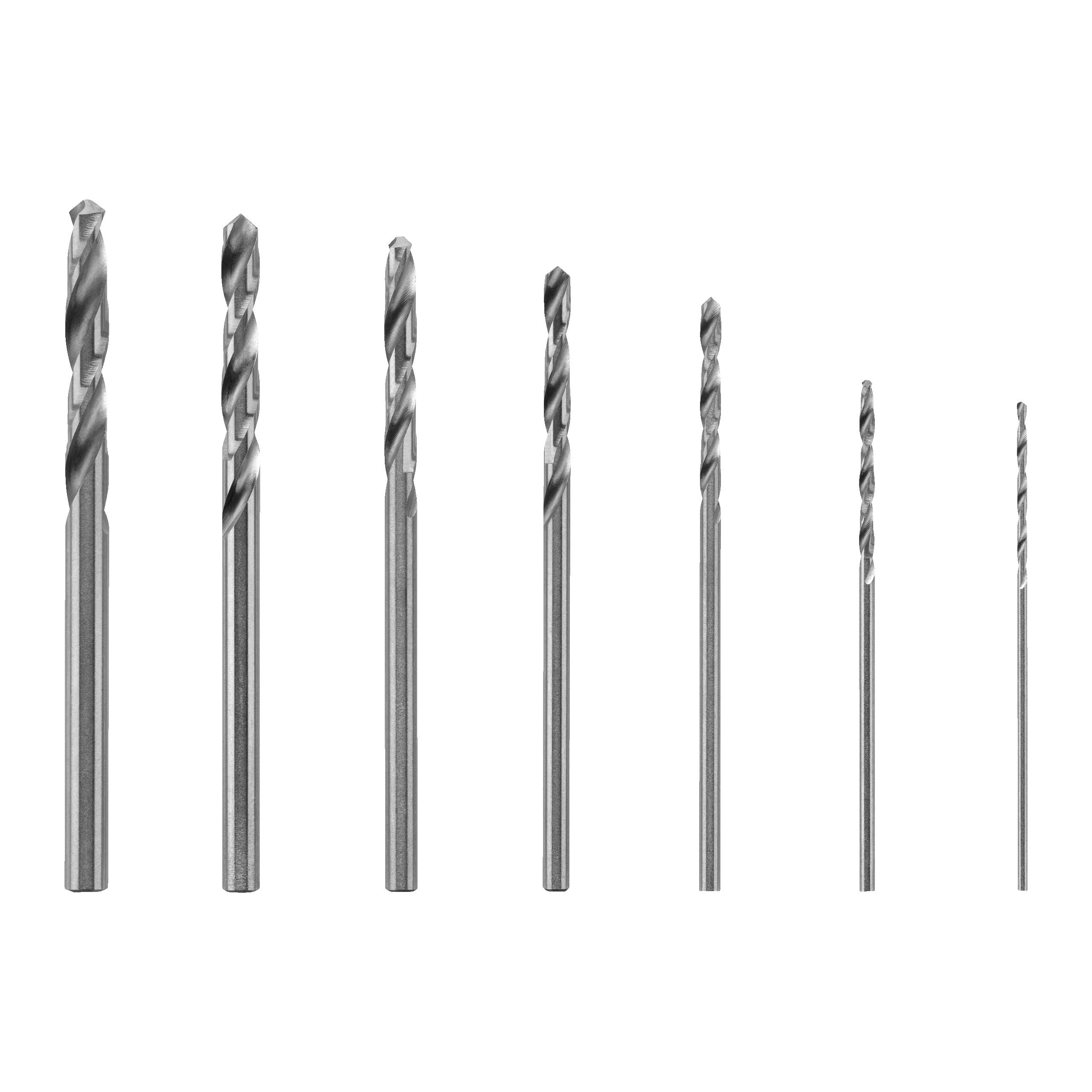- Setul de burghie de 7buc conține 1 x 0,79, 1 x 1,19, 1 x 1,58, 1 x 1,98, 1 x 2,38, 1 x 2,78 și 1 x 3,17 mm